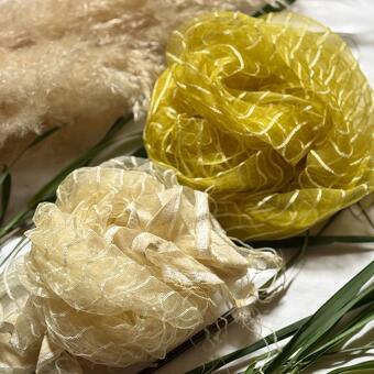 コミュニティガーデン風の丘の展示場所でもある、地球市民交流センター屋上庭園で生育しているパンパスグラスを使って草木染めをします。黄色がかった爽やかなグリーンに染まる予定です。