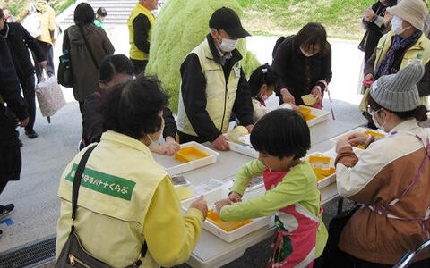 おかえりやさいプロジェクトは、主に名古屋市内のスーパーや学校給食、ホテルやレストランなどの生ごみをたい肥にリサイクルし、そのたい肥を使って育った野菜やお米を「おかえりやさい」として、スーパーや給食、飲食店などに戻す循環の取組です。愛・地球博の3年後、2008年に始まりました。おかえりやさいの循環の環を、見て・知って・味わって楽しめる講座を「なごや環境大学」で随時開催しています。