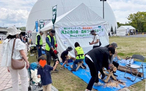 参加者に丸太切り体験をしてもらい、切った丸太は鑢(やすり)を掛けてお持ち帰りしてもらいます。