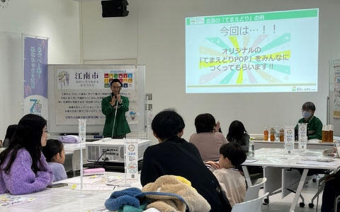 講座の中で、食品ロス低減を目指す取組みである「てまえどり」のお話をさせていただきます。その後、「てまえどり」を啓発する告知物(POP)をみんなで作りましょう!