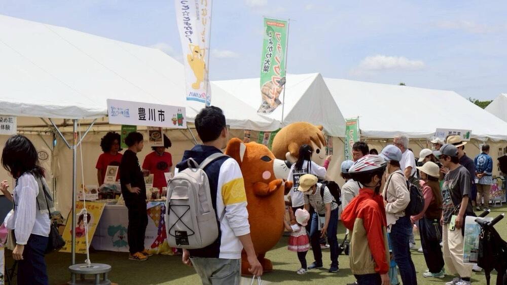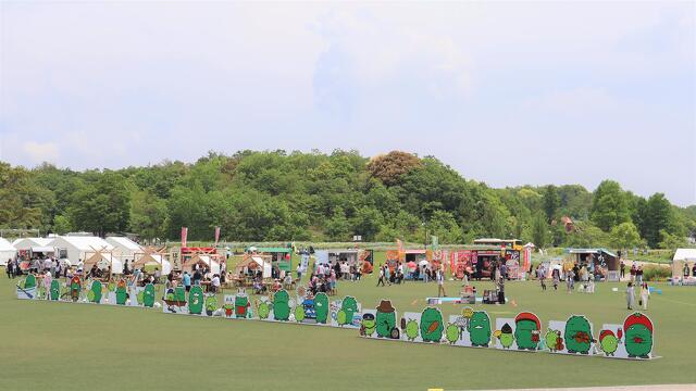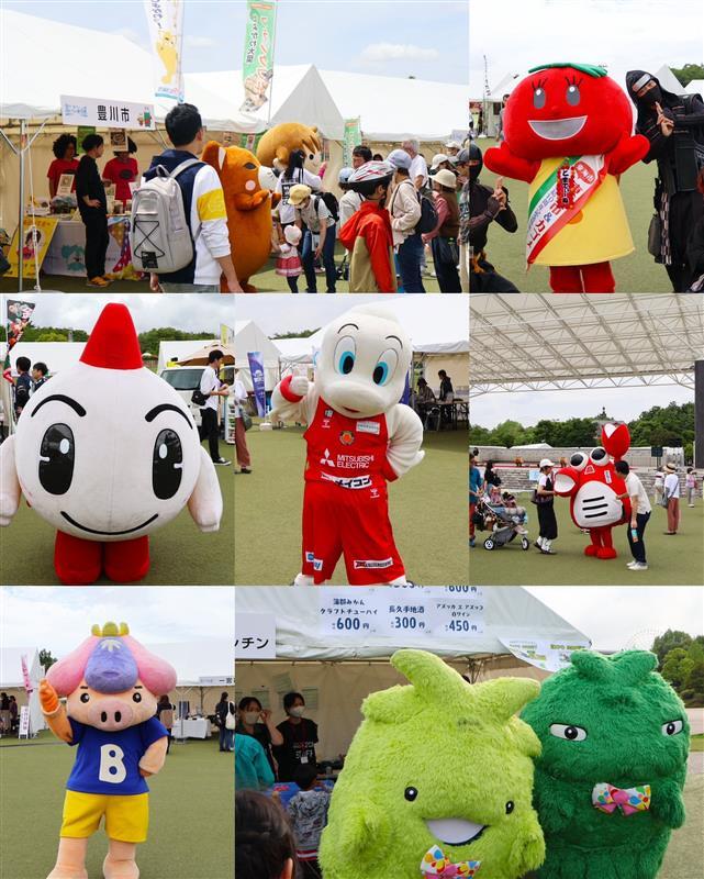 ご当地の特産品などとコラボした、54市町村のオリジナルモリゾー・キッコロが大芝生広場に大集合!