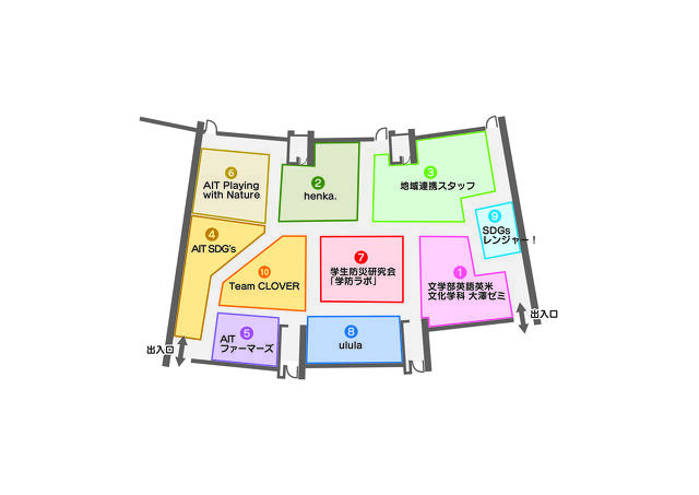 第1回全体ミーティングでの意見交換等を踏まえ、各チームがブラッシュアップした企画内容を持ち寄り、タームごとの会場レイアウトについて話し合いました。話し合いの中では、学生たちが主体性や協調性を発揮し、円滑に会場レイアウトを決定しました。