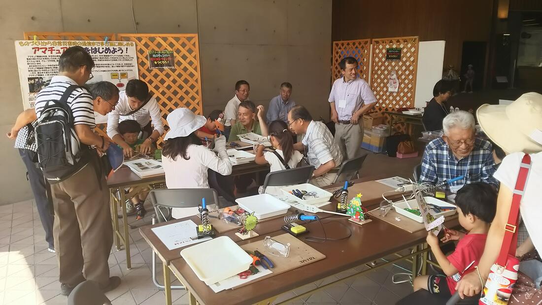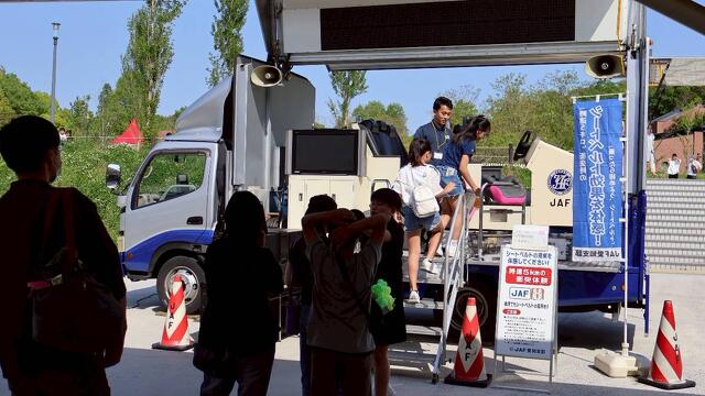 遊びと学びの体験フィールド・会場の様子 愛・地球博20祭を応援する万博宣隊のお一人、「なつ@愛知キッズMAP」さんに、遊びと学びの体験フィールドを紹介していただきました! 体育館(5/3(土)-6(火・祝))の様子 開場前からたくさんの方にお越しいただいています! SD-03(©㈱SkyDrive)の展示機に試乗できます! シン・イケドムは動かすことができるよ! ㈱村田製作所による村田製作所チアリーディング部、ムラタセイサク君、ムラタセイコちゃん! ㈱キュリオによるSCOOXTにも試乗できます! ドローンの操縦体験ではお菓子がもらえるかも! ブルーインパルスシミュレーターはお子さまに大人気! 【5/3,4】ねんドル岡田ひとみさんのねんど教室! 【5/3,4】粘土でロケットを作ってみよう! 久保田雅人さんのわくわく工作教室!みんなとっても楽しんでます! ドローンのプロによるデモ!迫力満点! お絵描きダンスステージでは、自分で描いた絵が踊りだします! ロボットの操縦も体験できます! コミュニケーションロボットKebbi Airと楽しくお話してみよう! 学びの教室(予約はこちら!) なりきりユーチューバーの様子。動画編集の基礎を学んで、これであなたもユーチューバーの卵! ライティングデザイナーの様子。あなたのセンスで本物のダンスステージを彩ろう! 森の音楽隊。自分で作り出した音を採って、動画に編集できるよ!楽しくておすすめ! 働く車(スケジュールはこちら) 【4/26-27】消防車(タンク車)。普段は見られない車両の内側を見せてくれるよ! 【4/26-27】救急車。車両によっては乗せてくれるかも! モリゾー・キッコロも遊びに来てくれました! 救急車の中ってこんな風になっていたんだね! 【4/26-27】自衛隊高機動車。いろんな装備があるんだ! 【4/26-27】自衛隊偵察用バイク。お父さんかっこいい! 【4/29,5/3,4】なまず号(地震体験車)の様子。 【4/29】NEXO中日本の道路パトロールカー。道路の安全を守ります! 【5/3,4】JAFによるシートベルトコンビンサー。シートベルトの着用の重要性が分かります! 【5/5,6】愛知県警のパトカーと白バイ! 【5/5,6】災害対策車両も間近に見られるよ! 企業のブース等(他にも楽しめるブースが盛りだくさん!) 【4/26-5/2】愛のぼりワークショップ。「愛・地球博20祭の感想」や「20年後の自分へ」等のメッセージを書いて、みんなで鯉のぼりを彩ろう! 【4/26-27】カシオ計算機のブース。AIペット・モフリンと触れ合えるよ! 【4/26-5/6の土日祝】アマチュア無線連盟によるモリゾーキッコロの電気工作。楽しみながら電子回路を学べるよ! 【5/3-5/6】2005年に愛・地球博でお披露目されたモノづくり図絵もレプリカを展開しています! 【5/3-5/6】こちらのゲートを目印に、体育館にお越しください! GWはモリコロパークで楽しんでいってね! 【5/3-6】ロボット博士・西山先生によるロボットの歴史展示も! 【5/3-4】トヨタ自動車㈱によるクルマ実験教室。MIRAIも展示してるよ! 【5/5,6】愛知県警による鑑識活動体験!サイバー犯罪対策についても学べるよ! 【5/5,6】警察犬の訓練展示は大人気(13:30~/日)! 遊びと学びの体験フィールド・全体ページに戻る