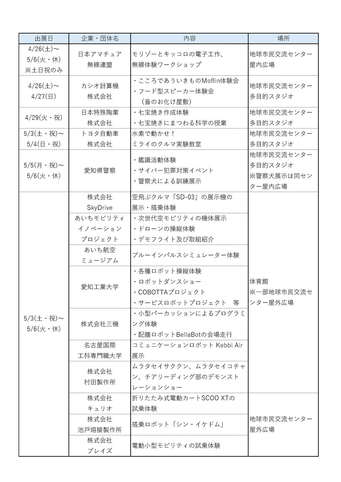 ①モリゾーとキッコロの電気工作、②無線体験ワークショップ