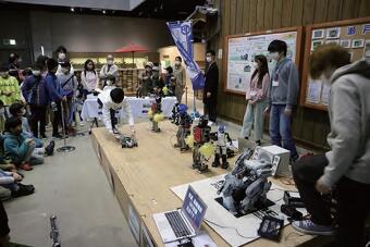 ①パーカッションを用いたによるプログラミング体験、②配膳ロボット「BellaBot」の展示