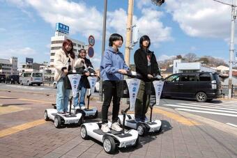 免許不要で楽しく気軽に外出できる、 シンプルでスタイリッシュな電動モビ リティー(移動用小型自動車)に乗って みよう。