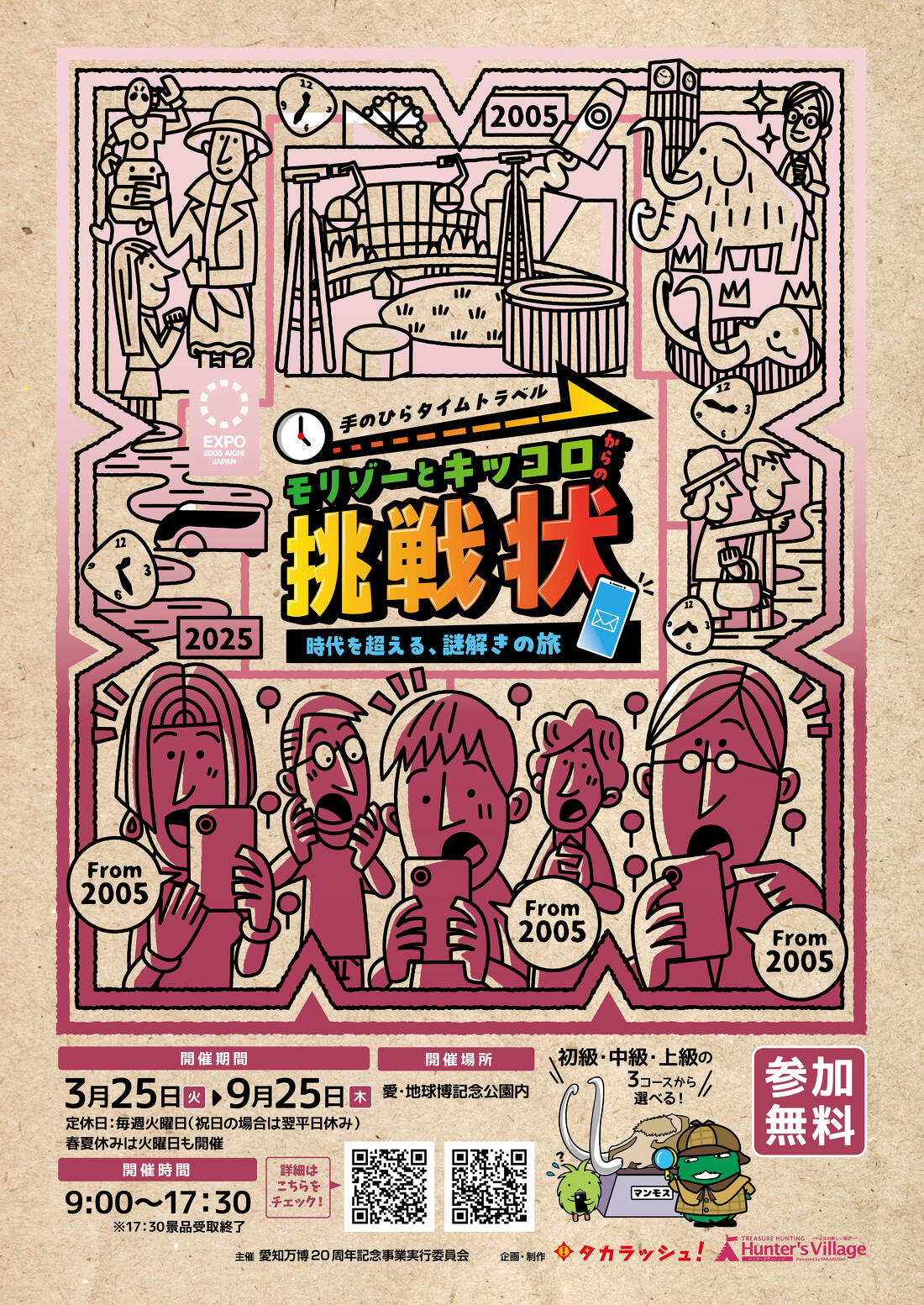会場となる愛・地球博記念公園では会期を通じ、万博当時を振り返りながらモリゾーとキッコロからの謎に挑戦するデジタルスタンプラリー「手のひらタイムトラベル」を実施します!