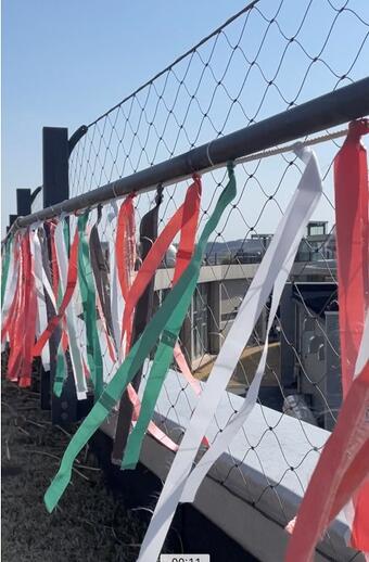 全長約200mの手すりに取り付けられたリボンは、