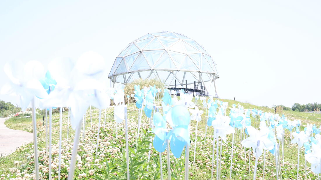 風の丘の象徴ともいえる、約400~500本の風ぐるまが生み出す流れるような風の動きにも注目です。