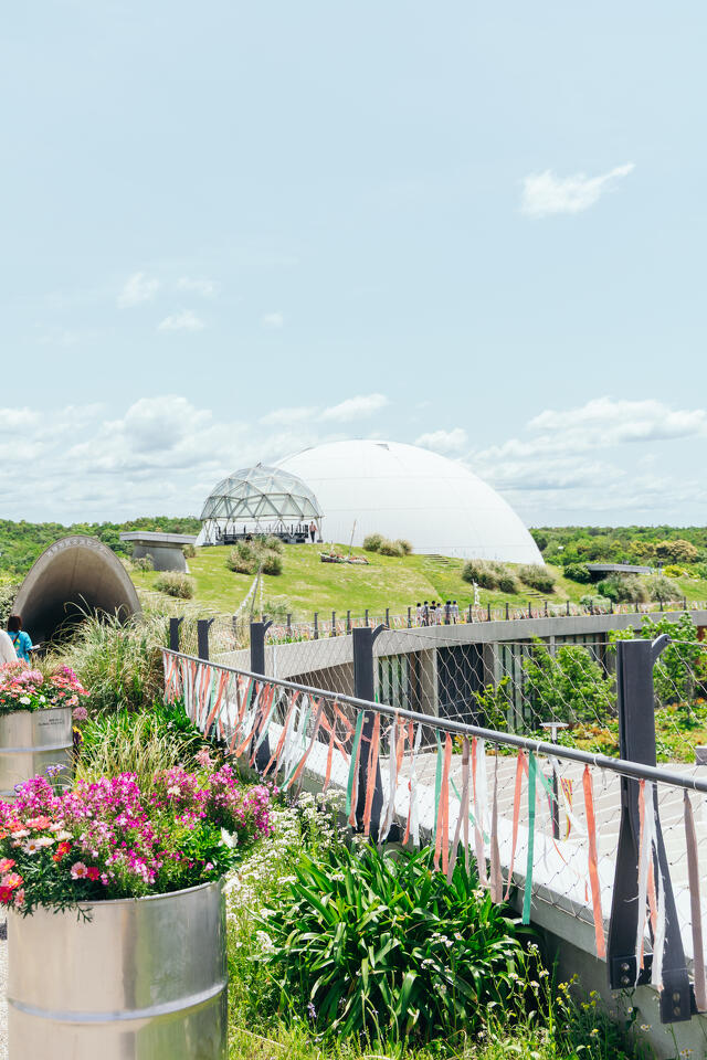 常に風になびくリボンが、愛・地球博20祭というお祭りの賑やかで楽し気な雰囲気を演出しています