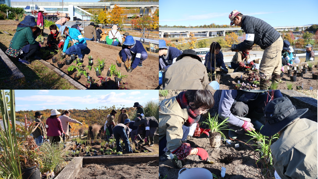 星が丘テラス(名古屋市千種区の商業施設)で8年目となる、一般向けのガーデニング年間講座 “星のガーデナー”講座の特別版「風の丘クラス」として、一般募集で集まったメンバーで2024年10月からガーデニングを学びながら宿根草の庭づくりをしています。
