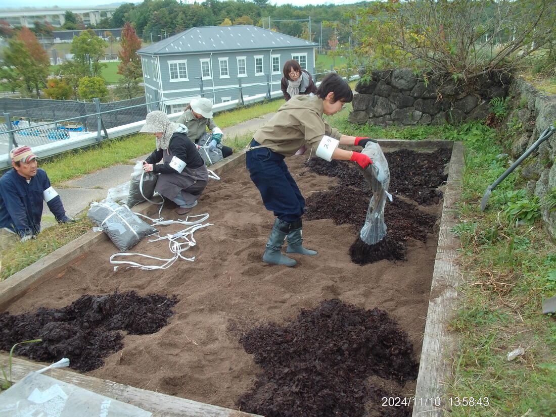 生物多様性について学んだ後、宿根草の切り戻し、肥料を撒く作業を行いました。